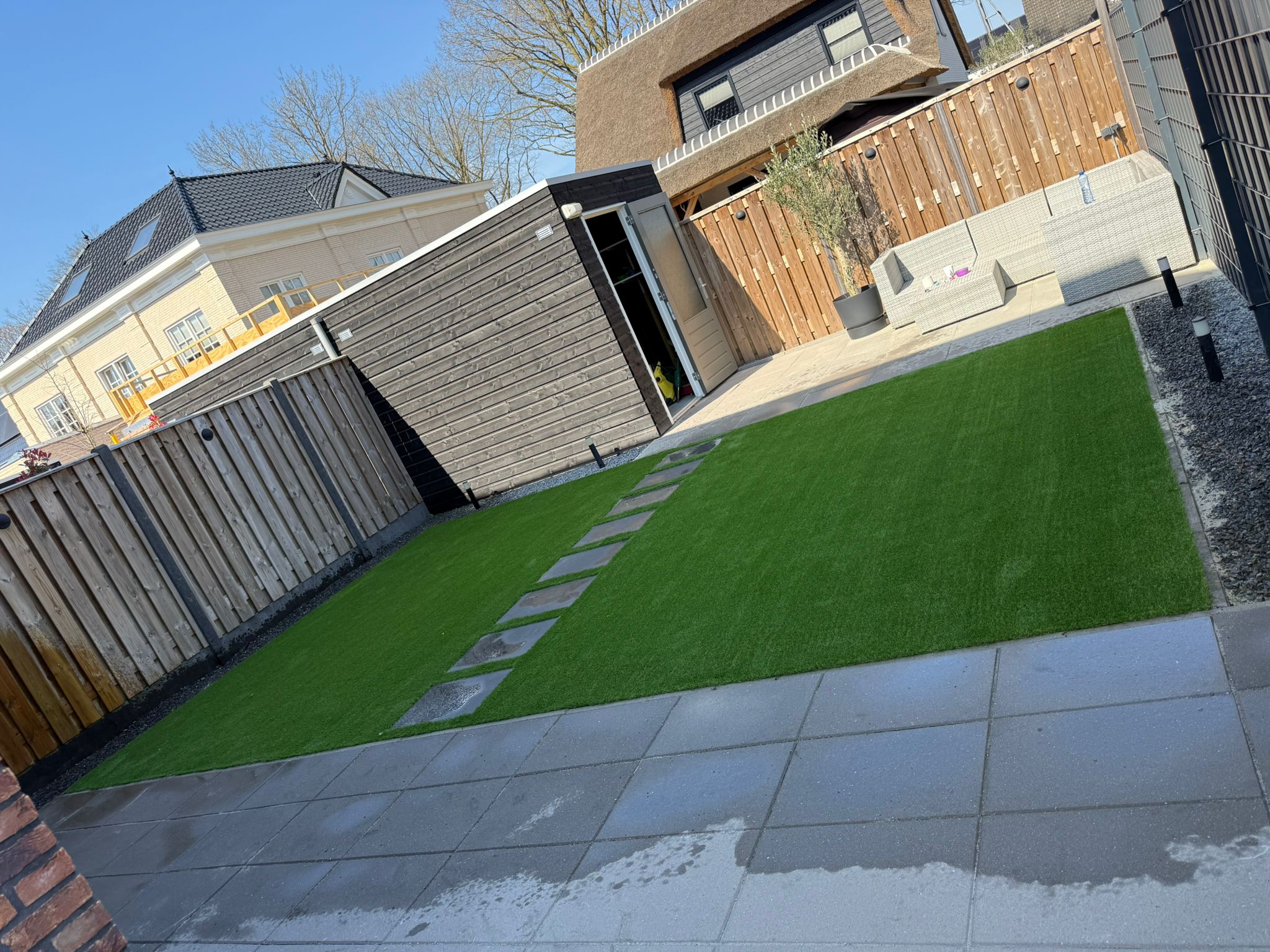 In Heesch, we recently transformed a backyard into a green, low-maintenance oasis with high-quality artificial grass. The residents wanted a neat and sustainable solution for their garden that would look fresh all year round, without constant maintenance.